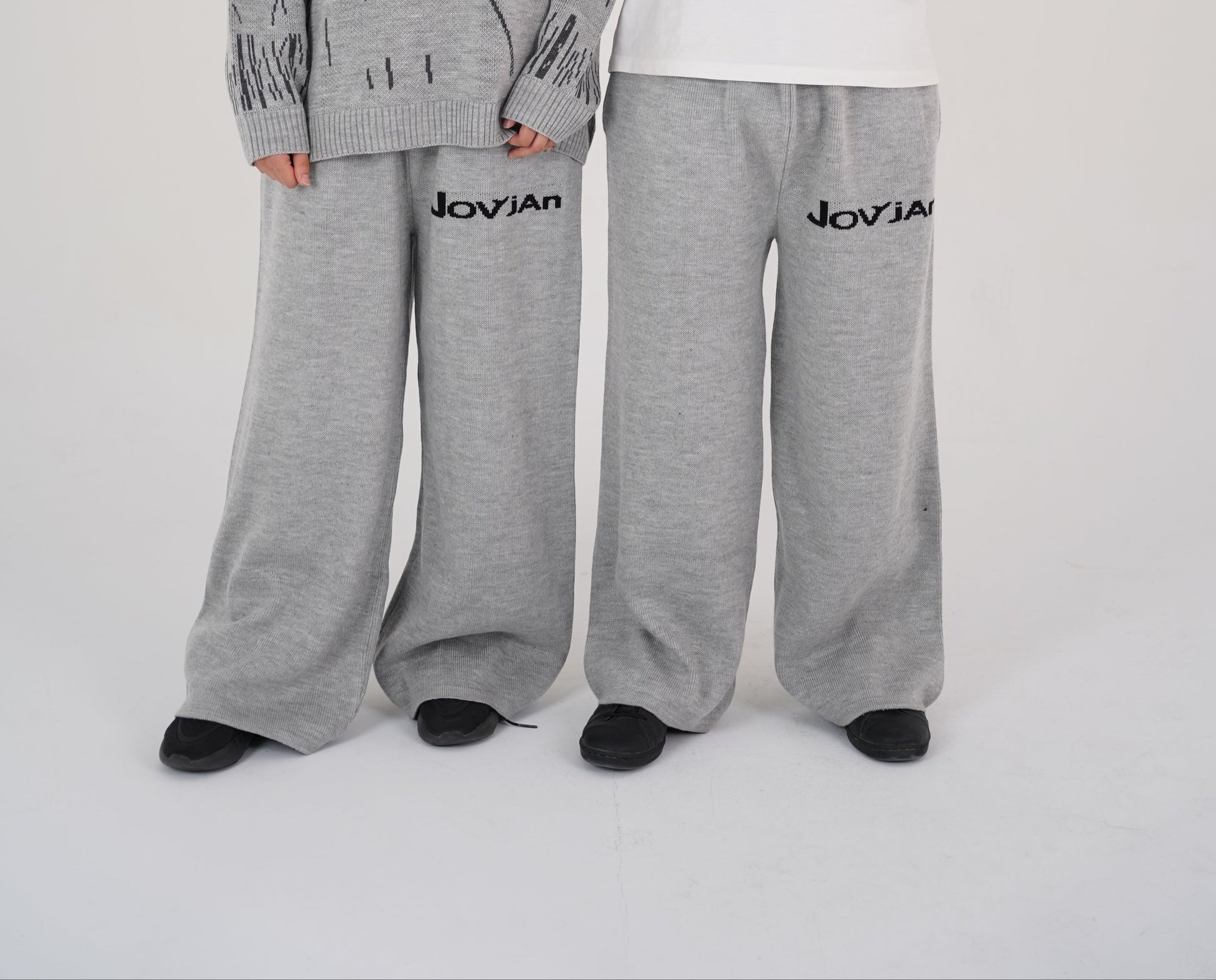The Jovian Grey Knit Pants combine comfort with a clean, versatile look. Made from soft stretch knit, they offer easy movement and a relaxed fit for everyday wear. Ideal for layering or pairing with matching knit tops.